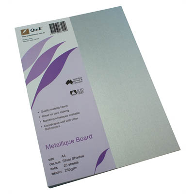 QUILL METALLIQUE BOARD 285GSM A4 SILVER SHADOW PACK 25