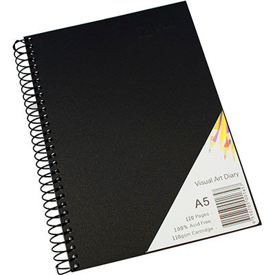 The medium texture and white/gray colour balance of Quill cartridge paper makes it suitable for many different creative styles, with a wide range of drawing/painting media Markings on one page will not bleed through to the next page Visual Art Diaries are an essential item for all artists - professional and student alike Continuous spiral bound premium quality Heavy weight backing board for added stability and strength Acid free