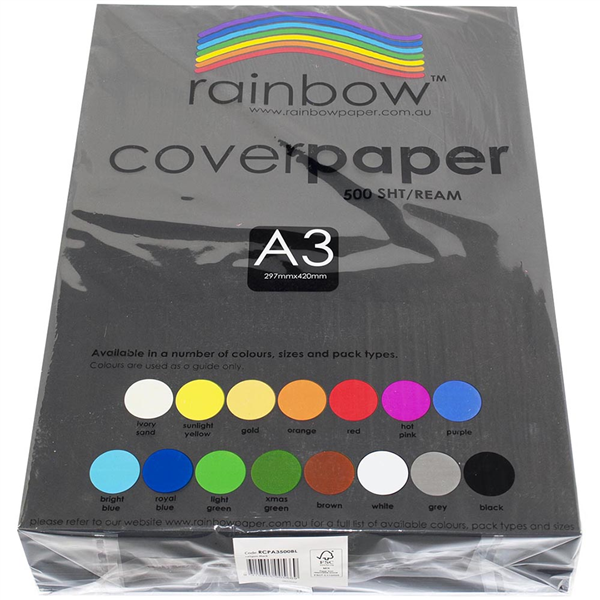 RAINBOW COVER PAPER 125GSM A3 BLACK PACK 500