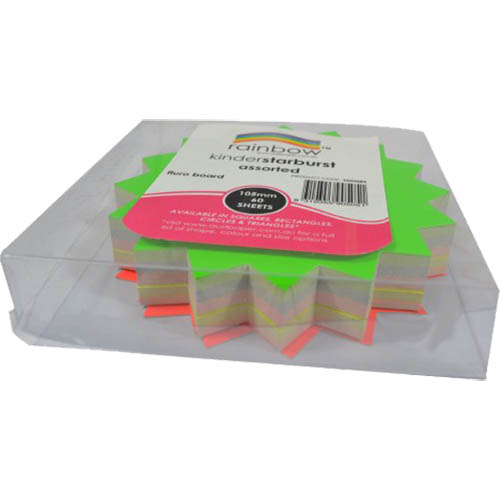 The Rainbow Paper brand represents an innovative approach to vibrant, colourful and most importantly fun specialty paper products Rainbow premium quality fluro board starbursts are a great addition to your craft project range and have a bright vibrant fluro colour Premium coloured paper kinder shapes Perfect for art & craft