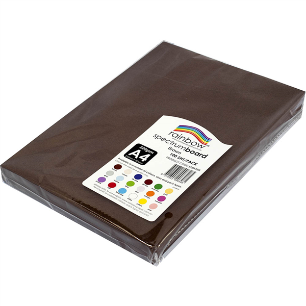 RAINBOW SPECTRUM BOARD 220GSM A4 BROWN PACK 100