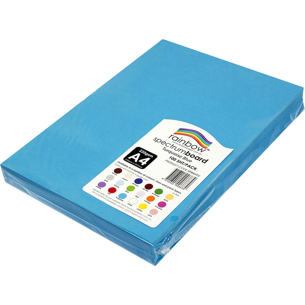 RAINBOW SPECTRUM BOARD 220GSM A4 TURQUOISE PACK 100