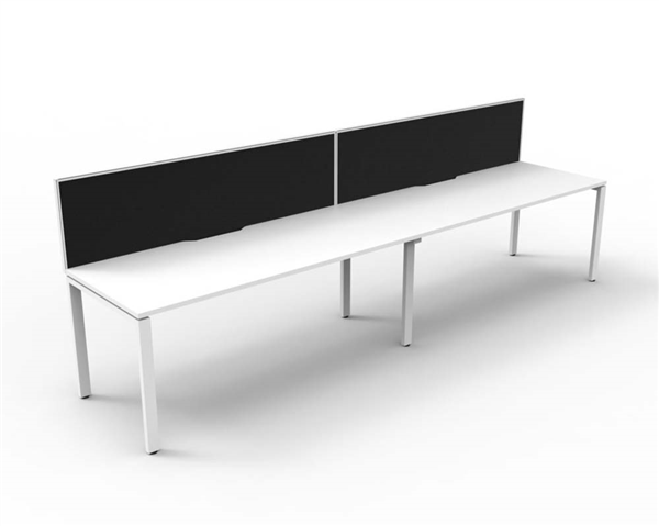 Available in a variety of configurations as straight benches or corner workstations in rows or pods to suit your office space Deluxe Rapid Infinity 2 Person Single Sided Workstation - With Screen Dual Cross Bar For Added Stability E1 Enviroboard Melamine Worksurface Adjustable Levelling Feet