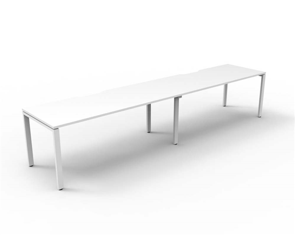 Available in a variety of configurations as straight benches or corner workstations in rows or pods to suit your office space Deluxe Rapid Infinity 2 Person Single Sided Workstation - No Screen Dual Cross Bar For Added Stability E1 Enviroboard Melamine Worksurface Adjustable Levelling Feet