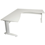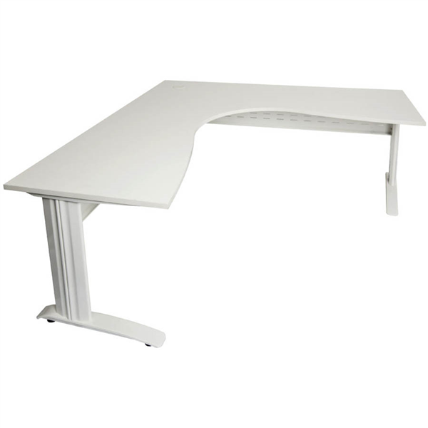 The Rapid Span Corner Desk features a 25mm melamine top with cable entries, metal legs and perforated modesty panel