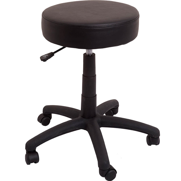 Ideal for short period sitting or with a height adjustable desk This stool has a gas height range of 450-570mm with a 400mm round seat Easy to clean black PU upholstered seat 400mm round stool Desk height Easy to clean Backed by a 3 year warranty