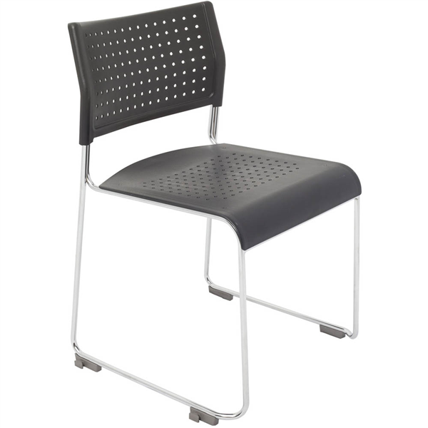 The sleek modern look Rapidline Wimbledon Visitors Chairs are very versatile chair, black plastic perforated back and waterfall seat and chrome steel rod sled base