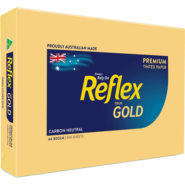 REFLEX COLOURS A4 COPY PAPER 80GSM GOLD PACK 500 SHEETS
