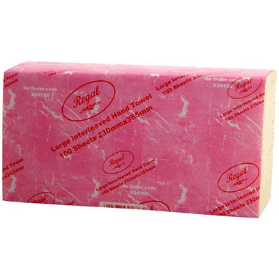 REGAL INTERLEAVED HAND TOWEL 1-PLY 230 X 365MM 100 SHEET CARTON 24
