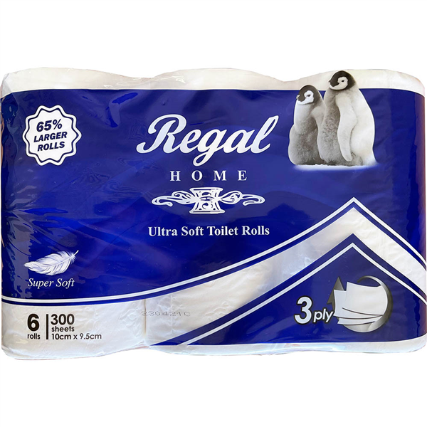 REGAL VIRGIN TOILET ROLL 3-PLY 300 SHEET WHITE PACK 6