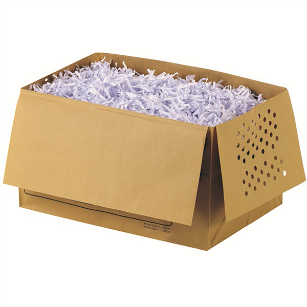 Recyclable shredder bags allowing you to empty your shredder quickly and efficiently Designed specifically to aid the recycling of shredded paper Self-Sealing to make waste disposal clean and efficient Once full, simply seal the bag with contents and put out for recycling Made from a paper material that can be recycled along with its shredded contents Suits Rexel Auto+ 100X/M shredder