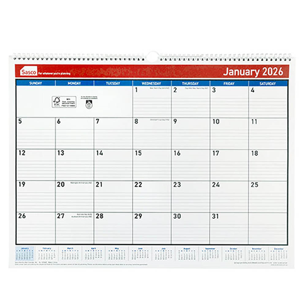 SASCO 2022 WALL CALENDAR MONTH TO VIEW 530 X 395MM
