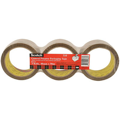 SCOTCH 310 GENERAL PURPOSE PACKAGING TAPE 48MM X 50M BROWN PACK 3