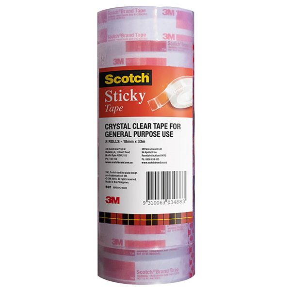 SCOTCH 502 STICKY TAPE 18MM X 33M PACK 8