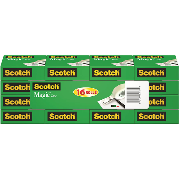 The Scotch Brand's famous matte-finish invisible tape uses unique 3M adhesive technology to bond tightly with paper and disappear without a trace Write on it with pencil, pen or marker.. every word is loud and clear Scotch Magic Tape is always ready for big ideas and everyday mends The original matte-finish, invisible tape Stands up to faxes, scanners and copiers Compatible with all of the Scotch Brand desktop dispensers for easy use Comes off the roll smoothly, cuts easily Preferred tape for offices, homes and schools Disappears on office paper Write on it with pen, pencil or marker Great for quick fixes, mounting or additions to your project Easy-to-apply design that doesn't dry out Photo safe