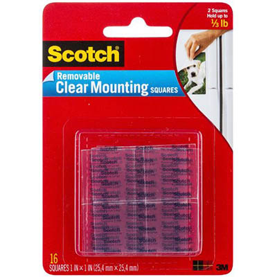 SCOTCH 859 MOUNTING SQUARES REMOVABLE 25.4MM CLEAR PACK 16