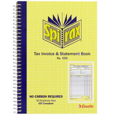 SPIRAX 555 TAX INVOICE AND STATEMENT BOOK CARBONLESS 50 PAGE 207 X 144MM