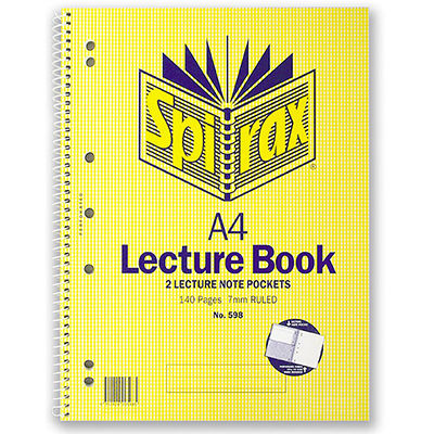 SPIRAX 598 LECTURE BOOK 7MM RULED 7 HOLE PUNCHED SPIRAL BOUND 140 PAGE A4