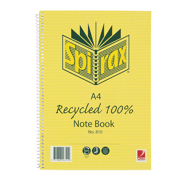 SPIRAX 810 NOTEBOOK 7MM RULED 70% RECYCLED CARDBOARD COVER SPIRAL BOUND A4 120 PAGE