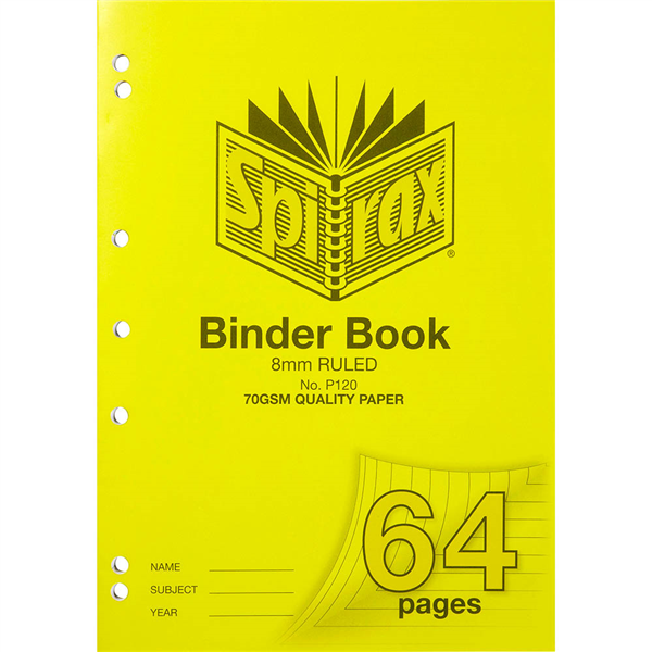 SPIRAX P120 BINDER BOOK 8MM RULED 70GSM 64 PAGE A4
