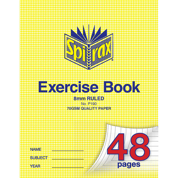 SPIRAX P190 EXERCISE BOOK RULED 8MM 70GSM 48 PAGE 225 X 175MM