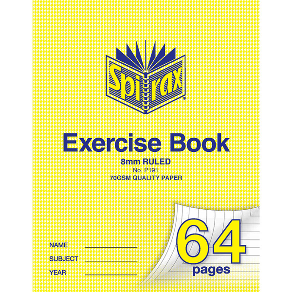 SPIRAX P191 EXERCISE BOOK RULED 8MM 70GSM 64 PAGE 225 X 175MM