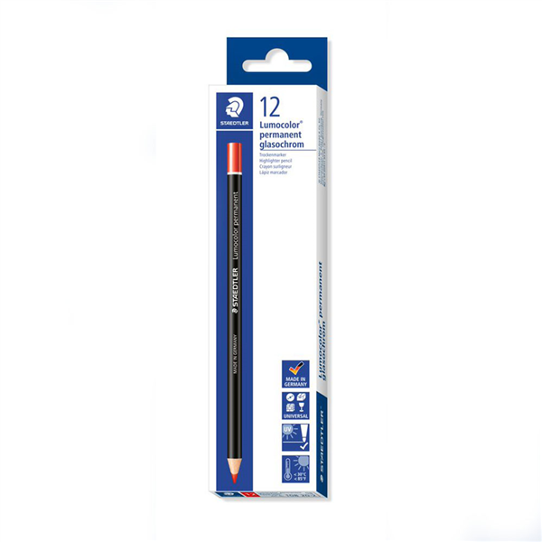 STAEDTLER 108 LUMOCOLOR PERMANENT GLASOCHROM PENCILS RED BOX 12