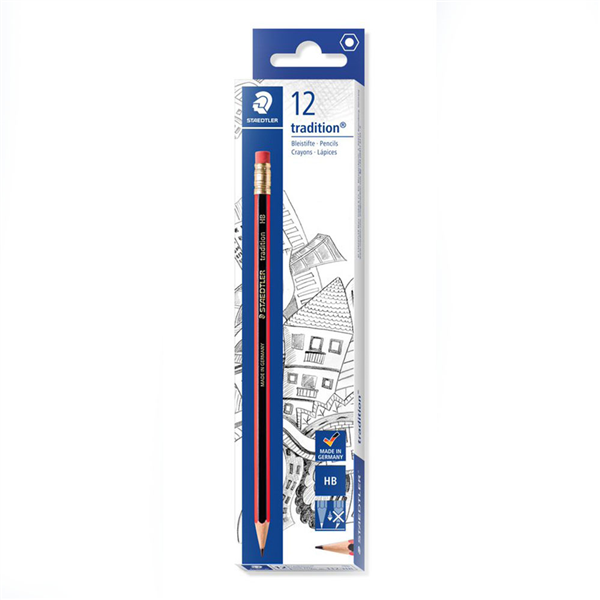 STAEDTLER 112 TRADITION GRAPHITE PENCILS ERASER END HB BOX 12