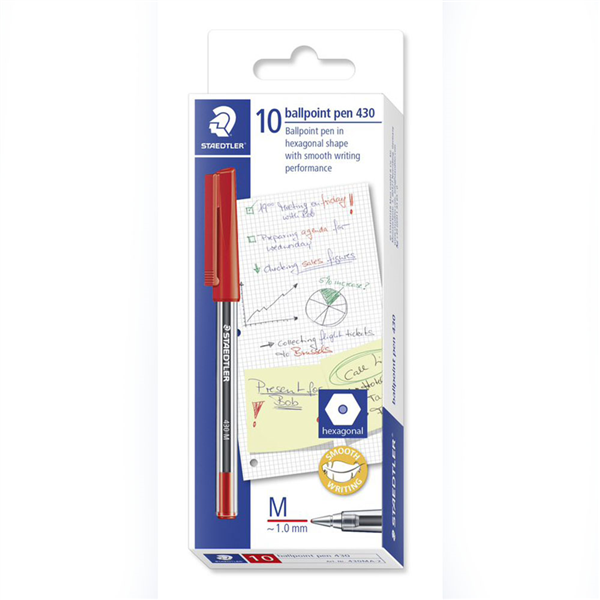 STAEDTLER 430 STICK BALLPOINT PEN MEDIUM RED BOX 10