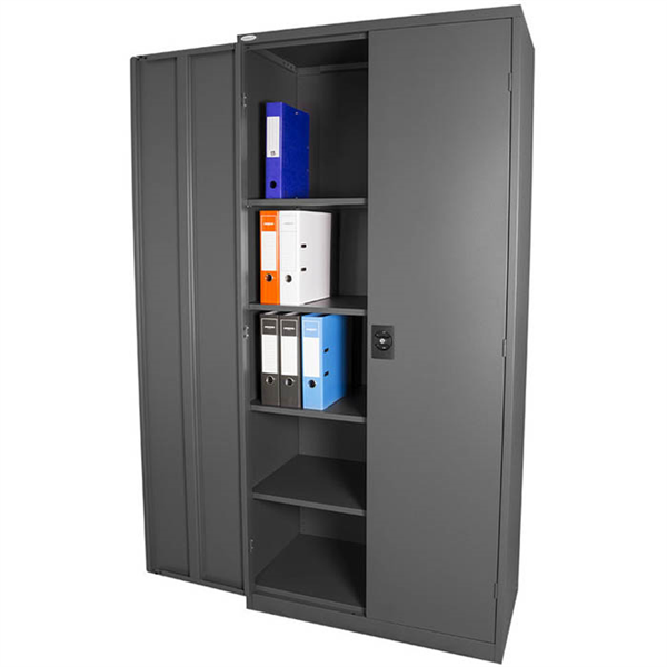 Shelves can be adjusted in height to maximise storage capacity Stationery Cabinets are available in various heights, widths, and configurations to suit your needs or available space Flush-mounted doors with a 180-degree door opening capacity Shelves are adjustable in 32mm increments 3-Point locking mechanism fitted with a barrel exchange lock Large range of accessories available to enhance your storage experience 40kg shelf capacity uniformly distributed load (UDL) Quality powder coated finish 10-year product warranty