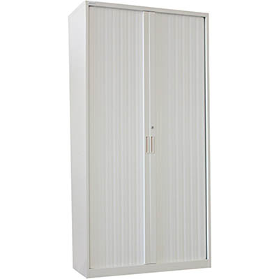 STEELCO TAMBOUR DOOR CABINET 5 SHELVES 2000 X 1200 X 463MM SILVER GREY
