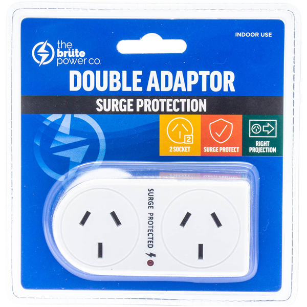 angled double adaptor allows two electrical items to be plugged into a single power outlet SAA Approved ensures this device has proven to comply with the safety requirements of the applicable Australian Standard 2 sockets running right with surge protection