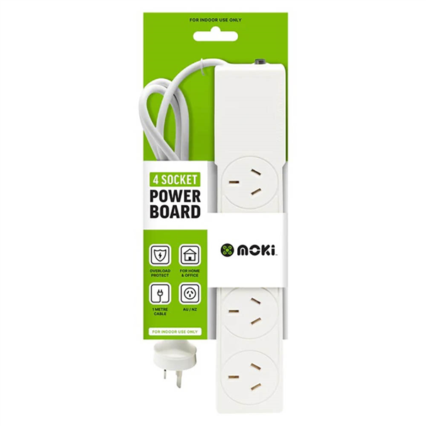 powerboard comes with four power outlets with overload protection 1000mm lead with side entry plug SAA Approved ensures this device has proven to comply with the safety requirements of the applicable Australian Standard