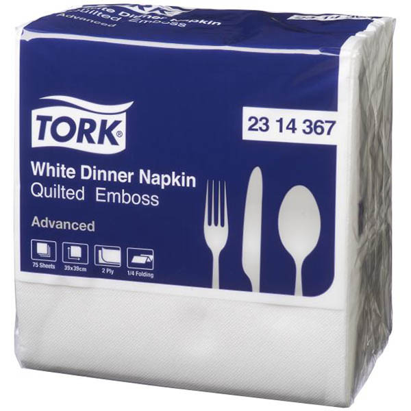 TORK 2314367 QUILTED EMBOSS DINNER NAPKIN 2-PLY 390 X 390MM WHITE PACK 75