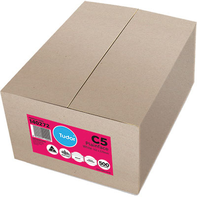 TUDOR C5 ENVELOPES BOOKLET MAILER PLAINFACE MOIST SEAL 80GSM 162 X 229MM WHITE BOX 500