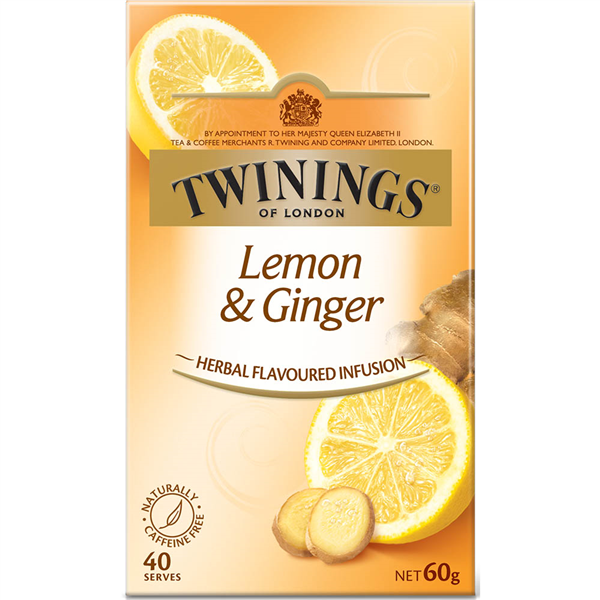 TWININGS HERBAL INFUSIONS LEMON AND GINGER TEA BAGS PACK 40