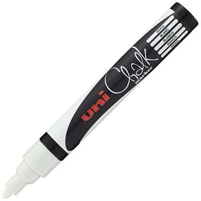The UNI-BALL PWE Chalk Marker writes on and wipes off making it the perfect tool for sign writing on non-porous surfaces such as chalkboards