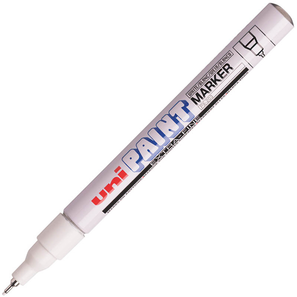 The PX-203 paint marker from Uni-Ball is an incredibly versatile oil based permanent marker that writes on almost all surfaces including metal, wood, glass, plastic, fabric and stone surfaces