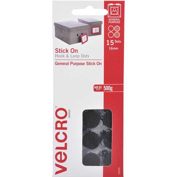 VELCRO BRAND? STICK-ON HOOK AND LOOP DOTS 16MM BLACK PACK 15