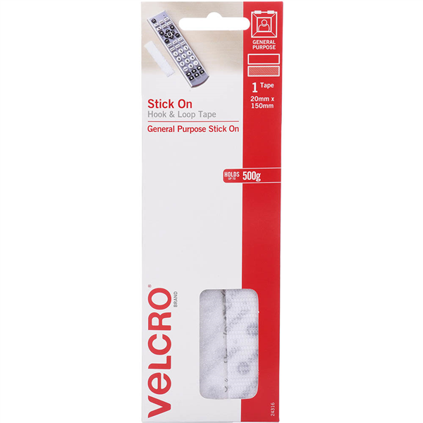 VELCRO BRAND? STICK-ON HOOK AND LOOP STRIP 20 X 150MM WHITE