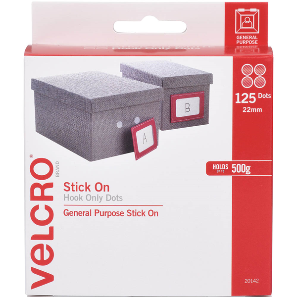VELCRO BRAND? STICK-ON HOOK DOTS 22MM WHITE PACK 125