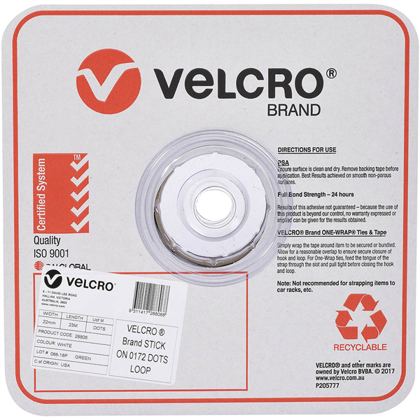 VELCRO Brand general purpose loop dots are ideal for smooth surfaces and can be used indodors