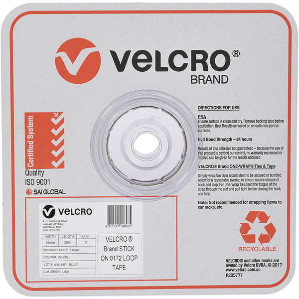VELCRO BRAND? STICK-ON LOOP TAPE 25MM X 25M WHITE