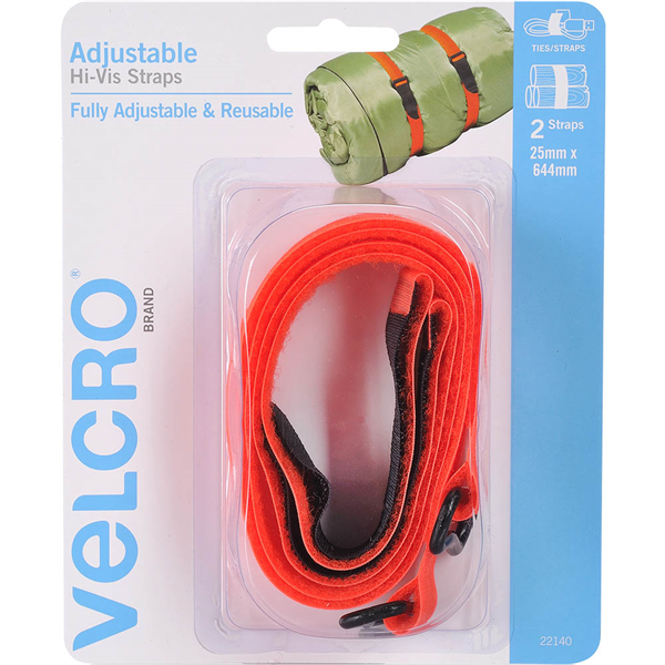 VELCRO BRAND? VELSTRAP? ADJUSTABLE MULTI-PURPOSE TIE STRAP 25 X 645MM HIGH-VIS ORANGE PACK 2