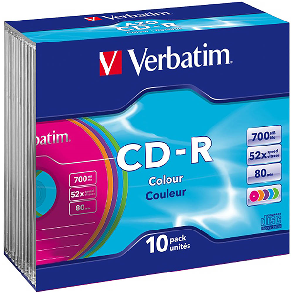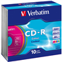 VERBATIM 41846 CD-R DVD JEWEL CASE 700MB 52X COLOURED PACK 10