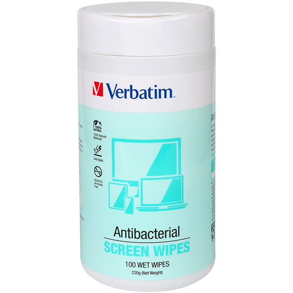 VERBATIM ANTIBACTERIAL SCREEN WIPES TUB 100