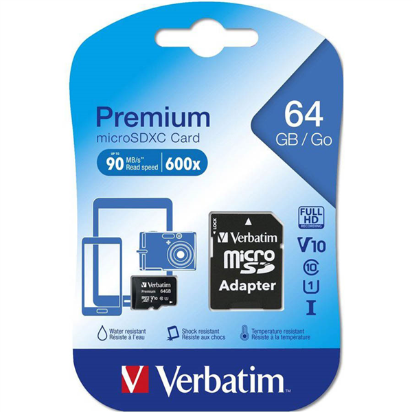 VERBATIM MICROSD CARD WITH ADAPTER 64GB BLACK