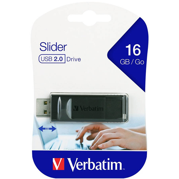 VERBATIM STORE-N-GO SLIDER FLASH DRIVE USB 2.0 16GB BLACK