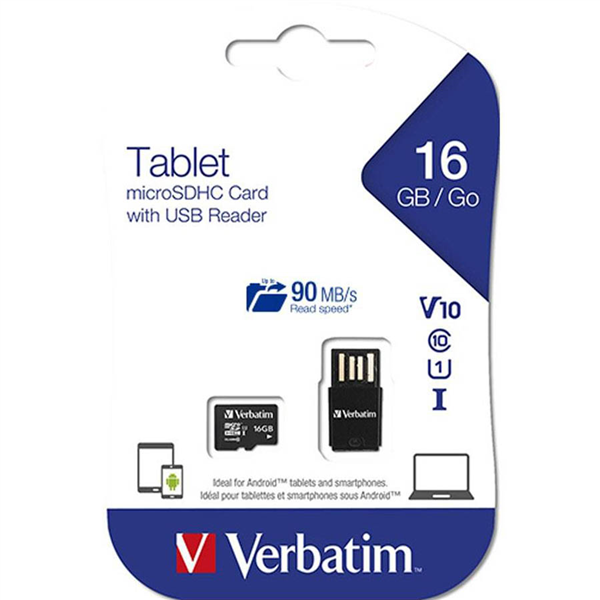 VERBATIM TABLET MICROSD CARD WITH USB READER 16GB BLACK