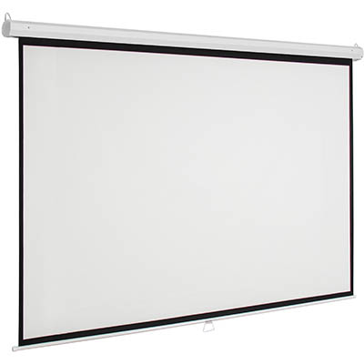Quality brand pull down projection screen High definition black borders Non curl and mildew resistant - screen will remain straight White all metal housing brackets included